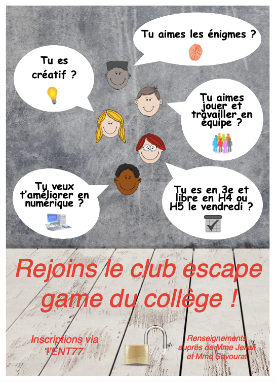 - 2e étape : créer une belle affiche sur la création de ce club et l’afficher sur les murs du collège ☑️