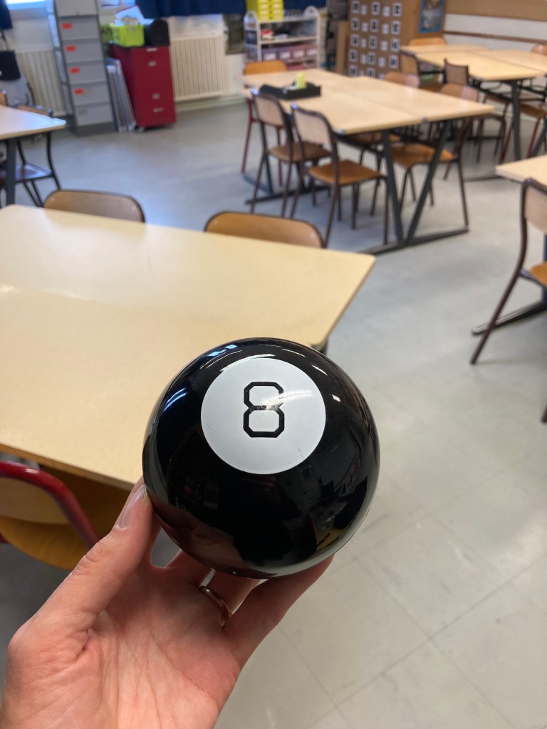 Les élèves invoquent parfois la boule, on lui pose une question (« est-ce que Mme Savourat nous donne une PPC à faire pour la prochaine fois ? » « Dorian a été tiré au sort 2 fois de suite, est-ce qu’il a le droit de ne pas passer cette fois ? ») et on regarde la réponse, aussi incontestable qu’incontestée : « Don’t count on it », « Outlook good » etc. 🎱