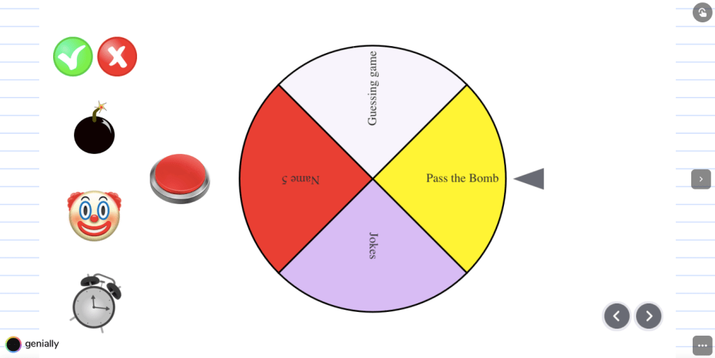 Depuis que je suis passée sur Genially, j’utilise une roue créé grâce au site S’cape, avec l’extension SOAD (pour Système d’obtention aléatoire de décisions).
