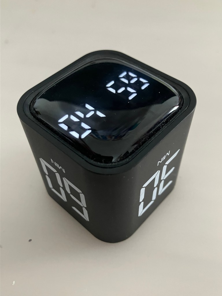Avant, j’utilisais une application sur mon smartphone. Maintenant, je suis passĂ©e Ă ce sympathique petit cube de 4 cm. Le principe est simple : on met le temps souhaitĂ© sur la face du haut (5, 10, 30, 60mn) et le temps commence Ă s’Ă©couler :