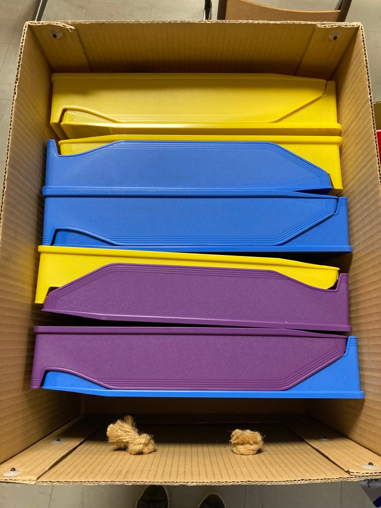 • Casiers (19 disponibles en très bon état ou neufs pour la plupart : 4 jaunes, 4 verts, 4 bleus, 4 roses, 3 violets) ➡️ 2€ pièce