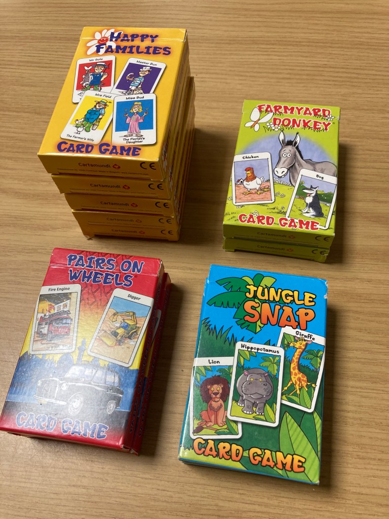 • Série de jeux de cartes comme neufs 5 Happy Families, 2 Pair of Wheels, 2 Farmyard Donkey, 2 Jungle Snap ➡️ 2€ pièce