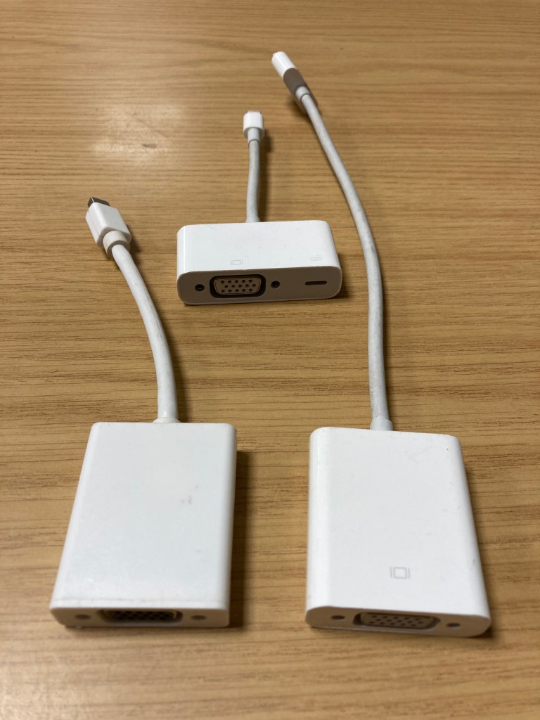 • Adaptateurs Mac (mini display port vers VGA, lightening vers VGA, port iPad 2 vers VGA) ➡️ 5€ pièce