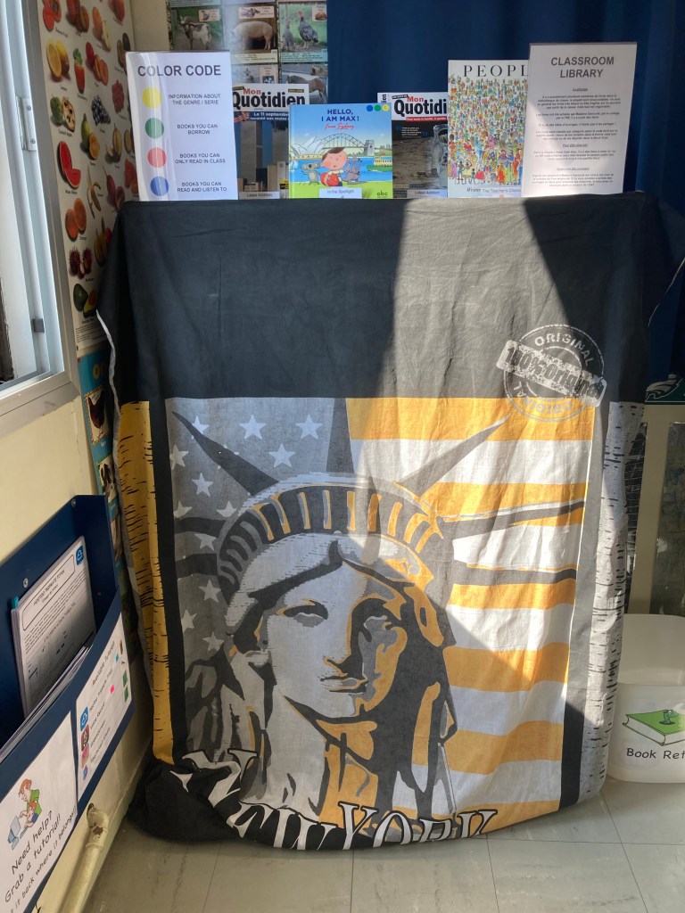 J’utilise le dessus de la bibliothèque pour mettre à l’honneur certains ouvrages en fonction de l’actualité et de ce qu’on étudie en classe.